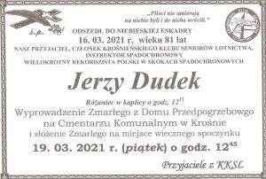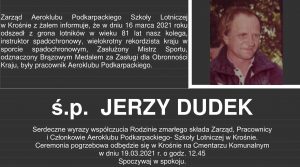 Zarząd Aeroklubu składa rodzinie zmarłego i najbliższym najszczersze kondolencje.